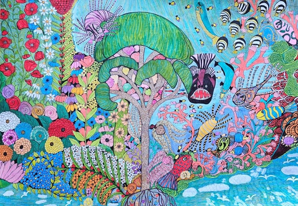 zasłużyła praca malarska pani Emilii Chorobik-Nedinić pt. "Podwodne miraże". Pozostałe prace